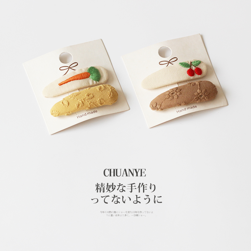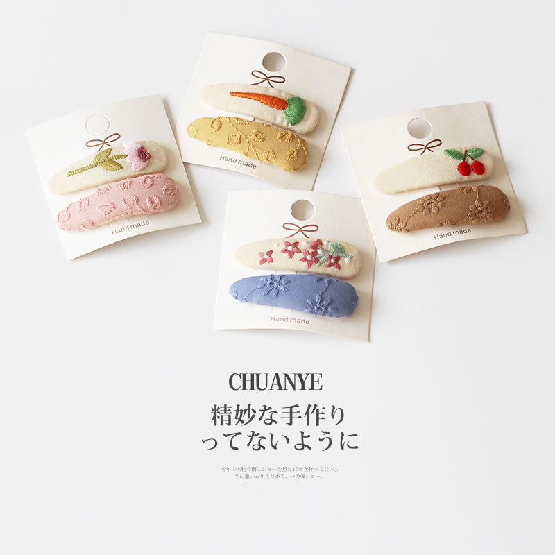 川野清新小碎花布藝刺繡少女bb夾精致發卡碎發夾劉海夾子頭飾發夾由