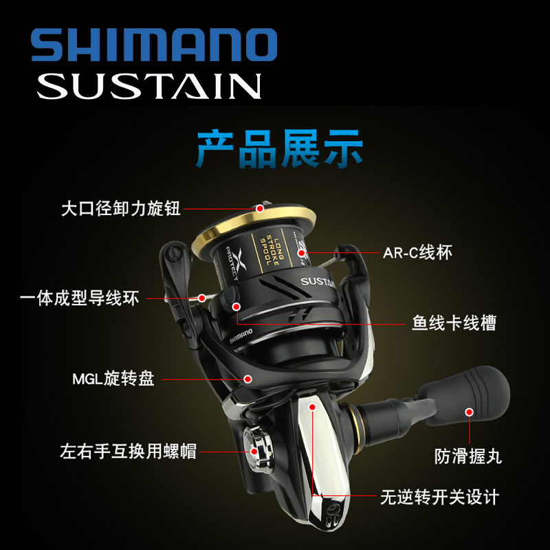 SUSTAIN紡車輪遠(yuǎn)投淡水海釣斜口杯漁輪魚線輪 SHIMANO禧瑪諾21新款由