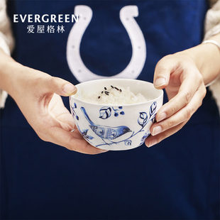 愛屋格林飯碗家用陶瓷碗4件套裝 創意餐具 小碗飯碗面碗湯碗美式由