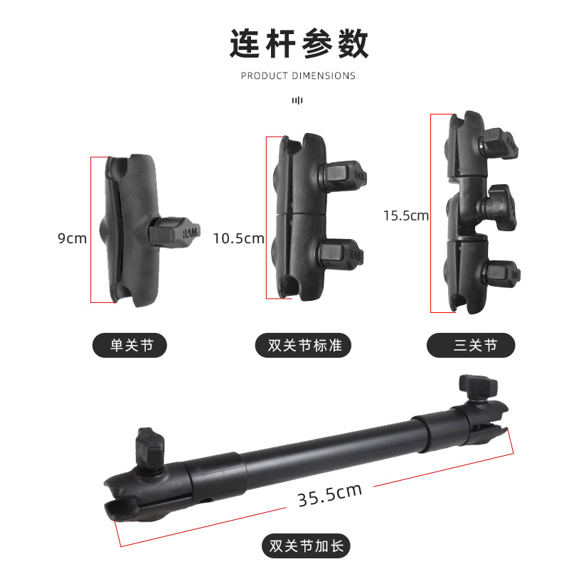 多角度多關(guān)節(jié)旋轉(zhuǎn)連桿三關(guān)節(jié)連桿 美國RAM摩托車支架車載支架配件由