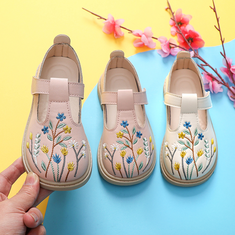 國風小皮鞋 真皮女童漢服鞋 子兒童馬面裙鞋 春秋新款 古風繡花公主鞋