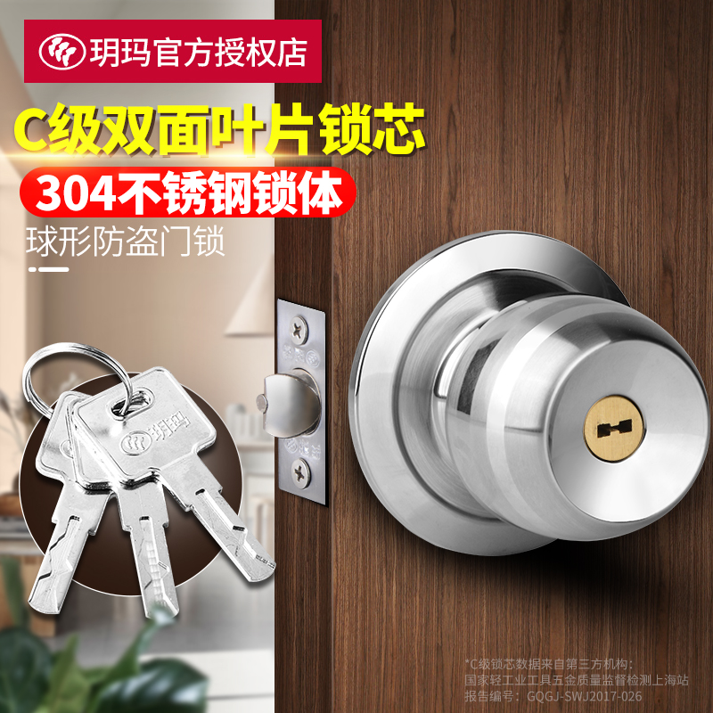 玥瑪球形鎖家用房門鎖球形防盜鎖室內臥室衛(wèi)生間門鎖不銹鋼球型鎖由
