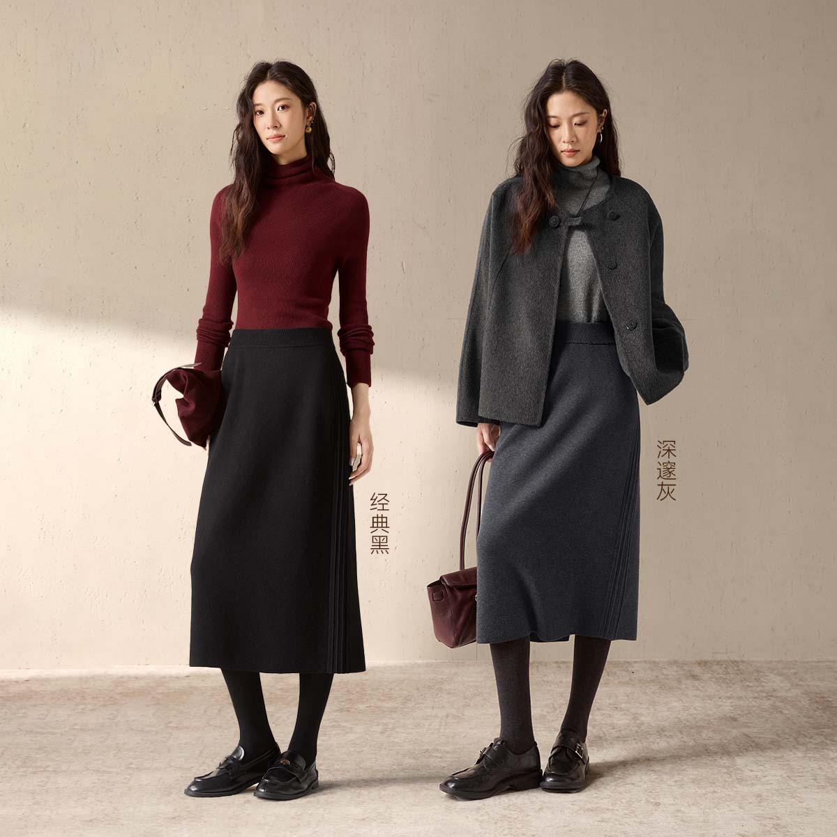 開叉直筒顯瘦中長優(yōu)雅一步裙女 沫晗依美含羊毛針織半身裙2025冬季由