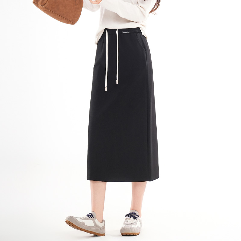 2025新款 a字裙中長包裙 黑色顯瘦休閑一步半身裙女高腰顯瘦大碼由