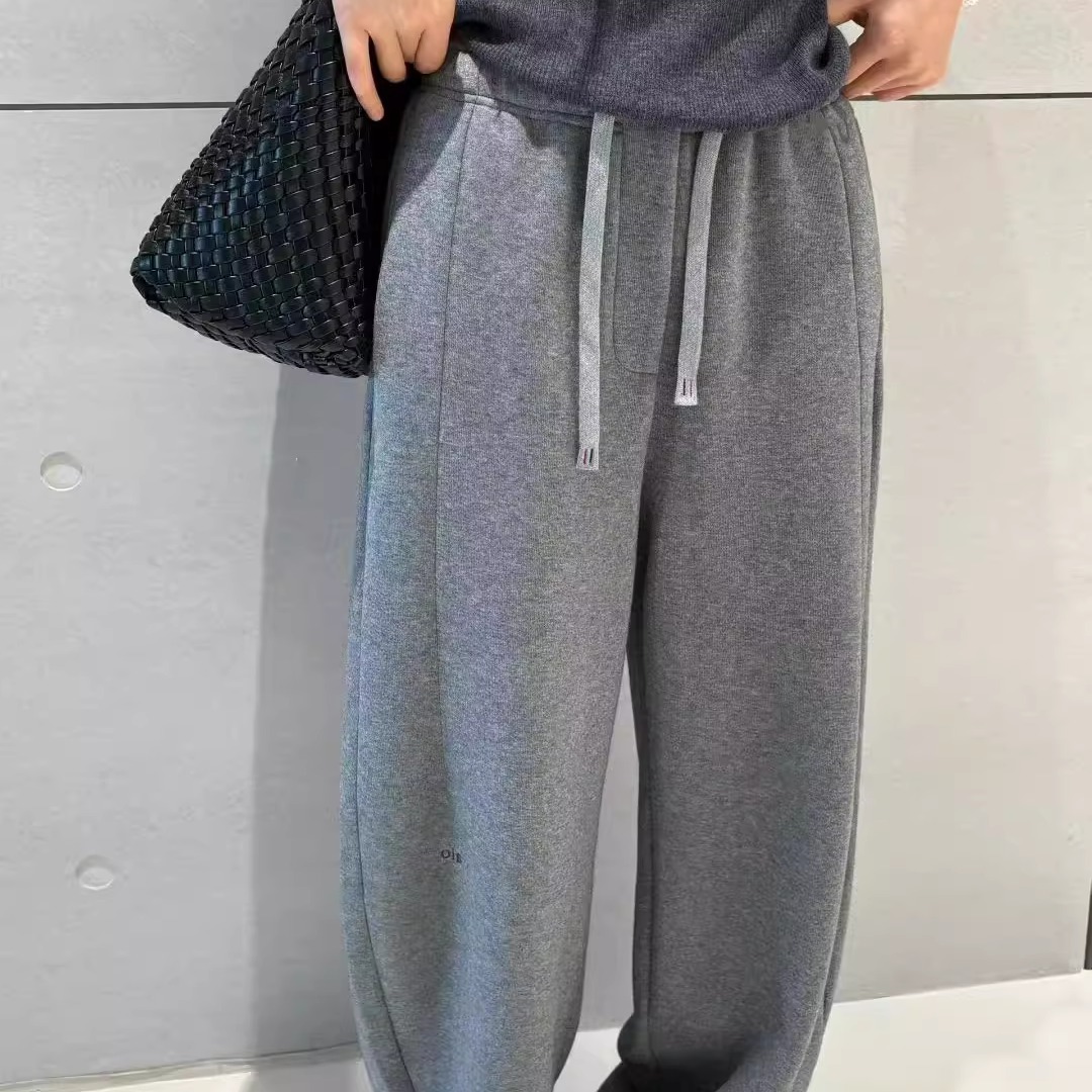 自然澀美式 女春秋季 松弛感穿搭褶皺寬松休閑褲 子 灰色印花運動衛褲