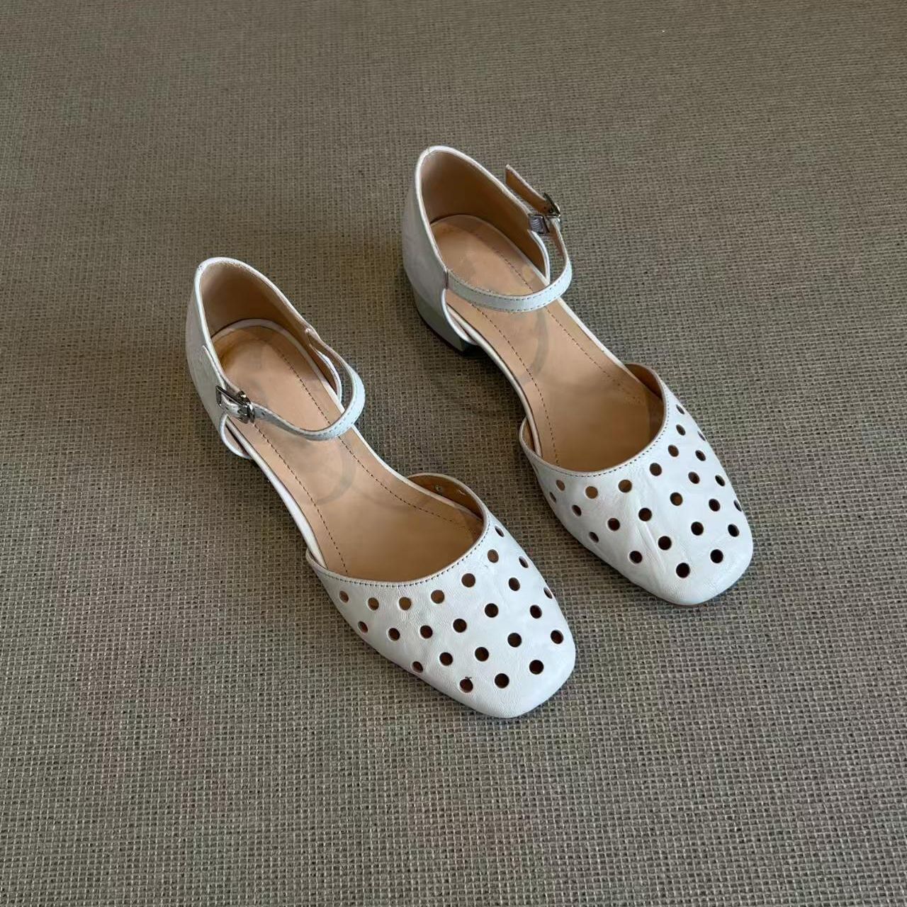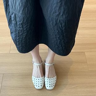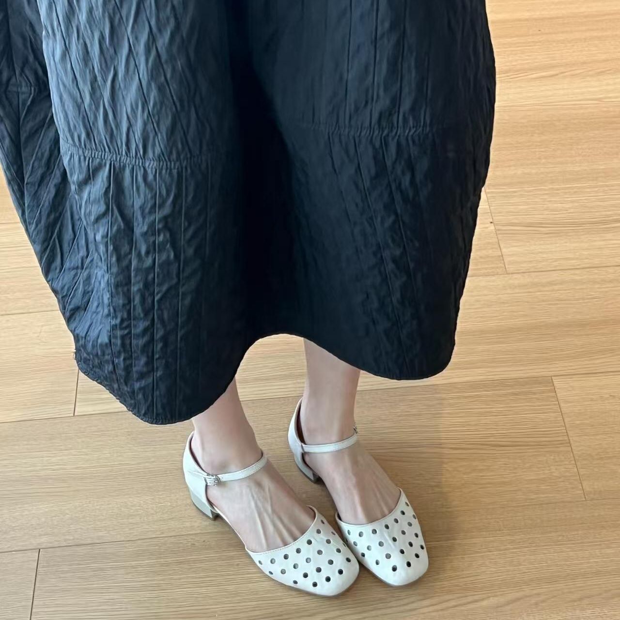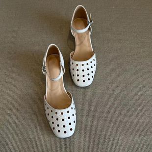 鏤空圓孔夏季 買手店韓版 明星款 法式 粗跟氣質(zhì)舒適絕絕子百搭一 新款由
