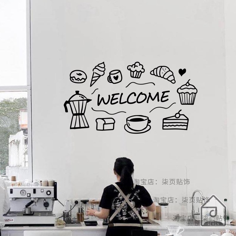 柒頁 飾創意手繪圖案貼紙 蛋糕甜品烘焙面包咖啡店鋪玻璃門櫥窗裝由