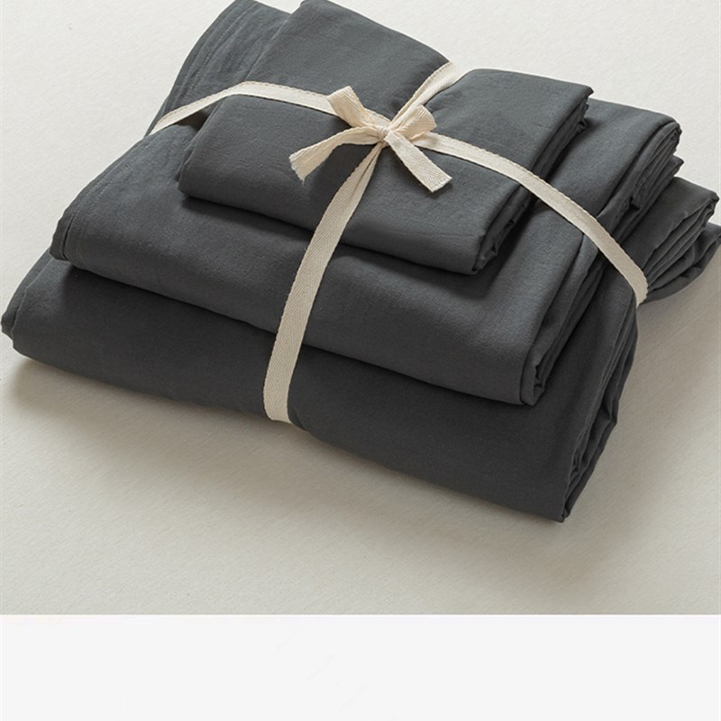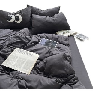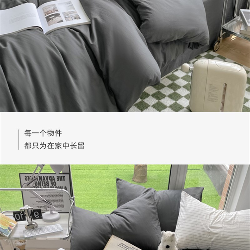 極速ins純色水洗棉四件套簡約灰色男生被套N罩床笠單人宿舍床上三由