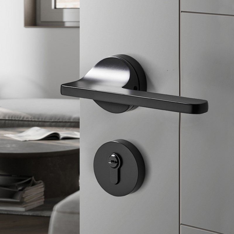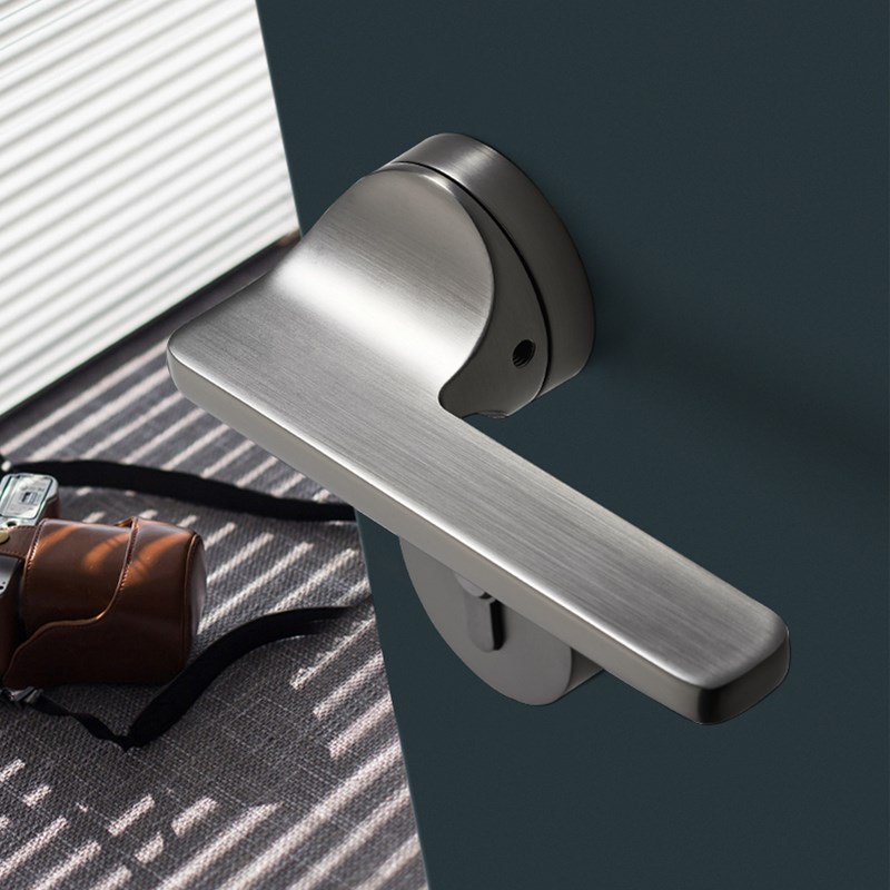 實(shí)木房門鎖 奧勒簡約室內(nèi)臥室房間靜音磁吸北歐灰黑門把手分體套裝由