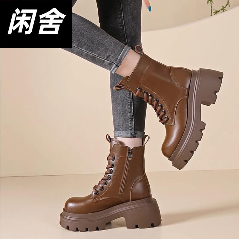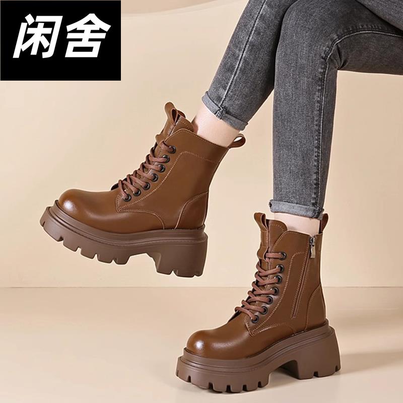 秋冬真皮厚底大頭短靴復(fù)古高幫大黃靴 內(nèi)增高馬丁靴女靴子2025新款