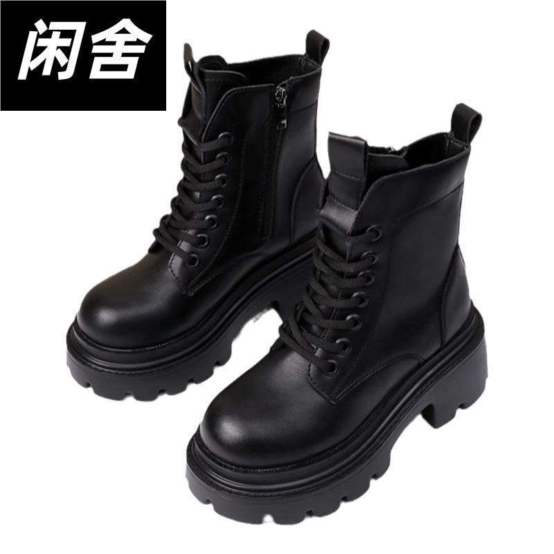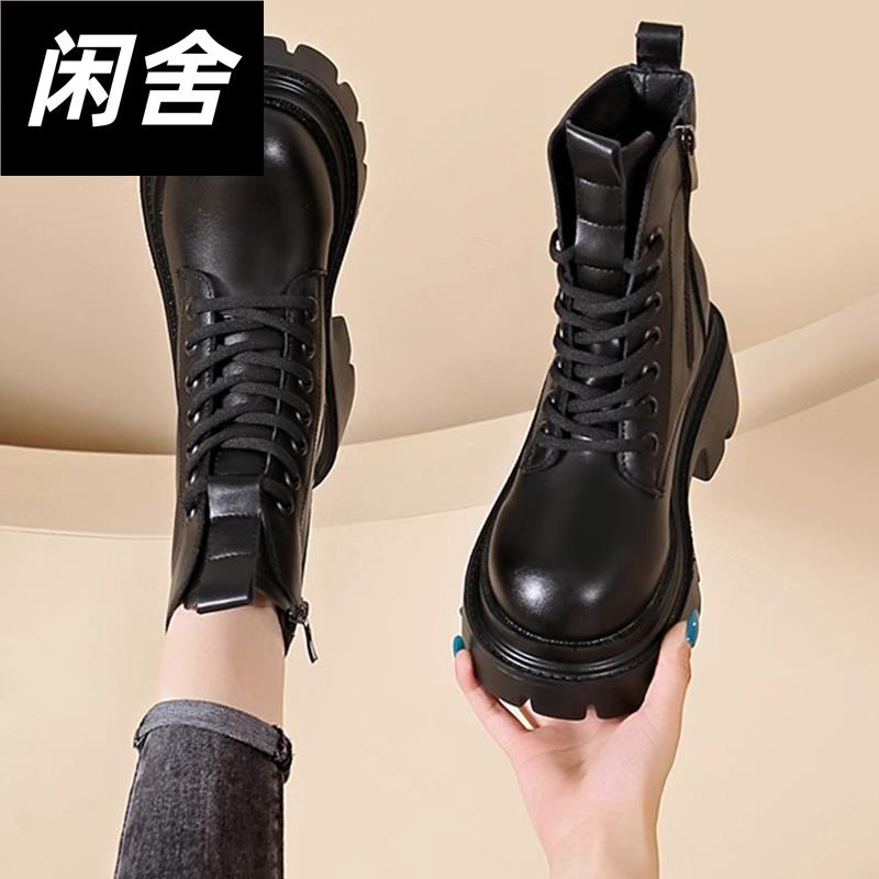 達(dá)芙妮黑色馬丁靴女款 皮靴厚底炸街英倫風(fēng)增高靴子女短靴 2025秋季