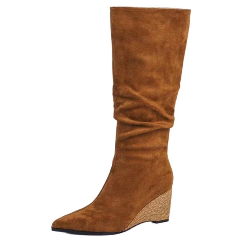 堆堆靴側拉鏈水鉆百搭長筒時裝 靴 新款 尖頭坡跟不過膝長靴2025秋季由
