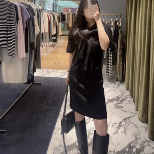 朗姿2025年秋季 黑色長裙高級感氣質法式 設計感收腰襯衫 連衣裙 新款