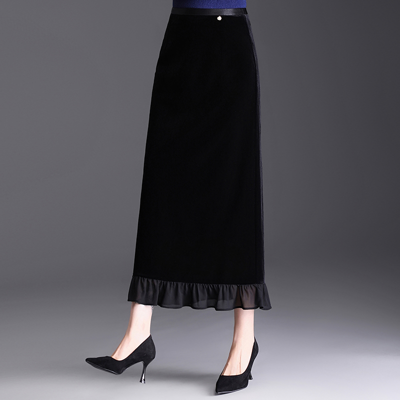 2025秋季 優(yōu)雅拼接絲絨長裙一步裙女垂感通勤顯瘦包臀半身裙子 新款由