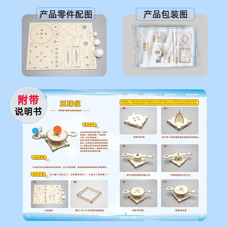 地球月亮太陽模型手工作業材料包科普公轉自轉天體運行規律三球儀由