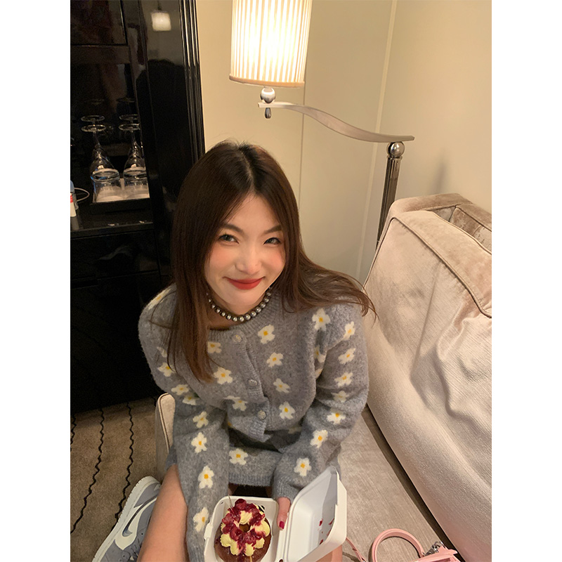 女小個子套裝 落落狷介 深冬裝 搭配一整套灰色毛衣套裝 毛衣 裙開衫由