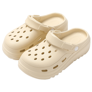 外穿夏季 孕婦洞洞鞋 厚底沙灘踩屎感女款 2024新款 女士 防滑包頭拖鞋由