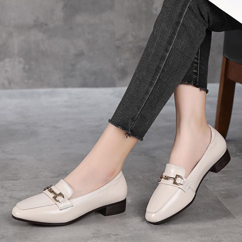 休閑鞋 真皮白色單鞋 子 巨好看軟底芭蕾淺口小皮鞋 新款 女款 2025秋季