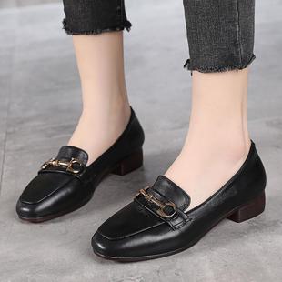 厚底單鞋 達(dá)芙妮黑色小皮鞋 女2025秋季 新款 一腳蹬英倫風(fēng)淺口樂(lè)福鞋