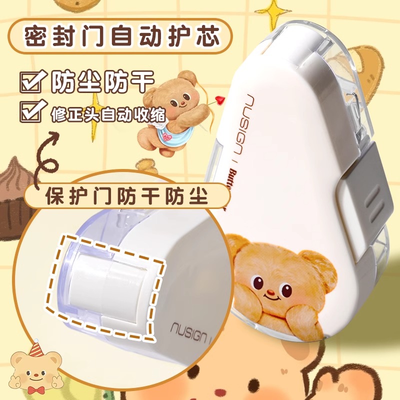 高中生無痕糾正 得力黃油小熊聯名按動修正帶可換芯初中生專用小學生涂改帶大容量高顏值可愛女生改正帶實惠裝由