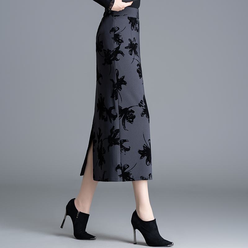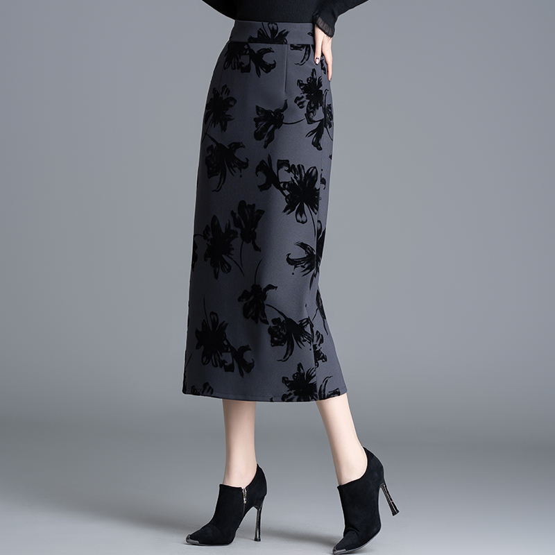 植絨提花包臀裙時尚 高腰氣質中長半身裙 開叉一步裙女秋冬新款由