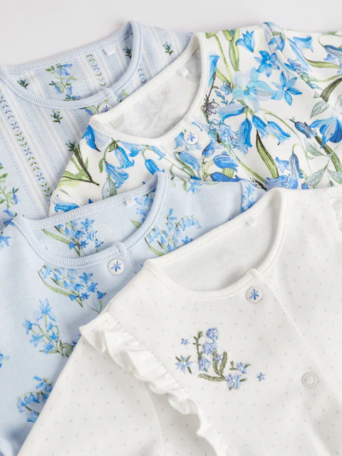 現貨英國Next童裝 不包腳連體衣爬服睡衣4 女寶寶嬰兒藍色碎花長袖由
