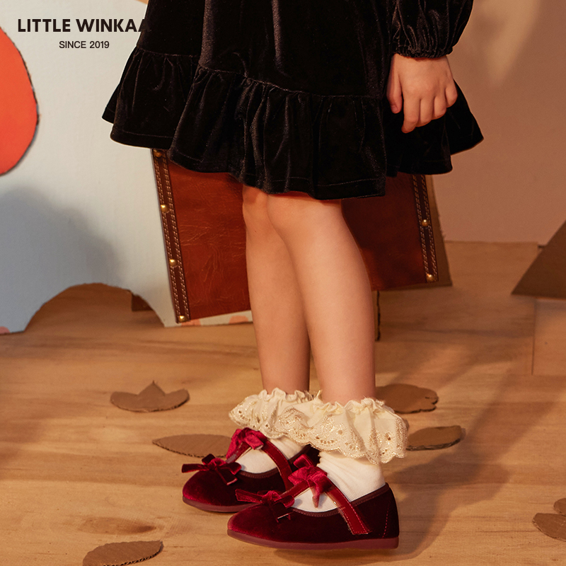 little 女童雙蝴蝶結(jié)公主鞋 絲絨舞蹈鞋 LW23026 winkaa小溫卡春秋款由