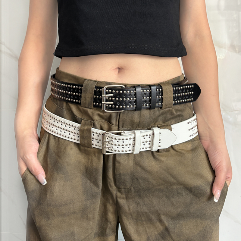 皮帶女2024新款 復(fù)古年輕人裝 飾配牛仔褲 高級(jí)休閑 白色腰帶y2k美式由