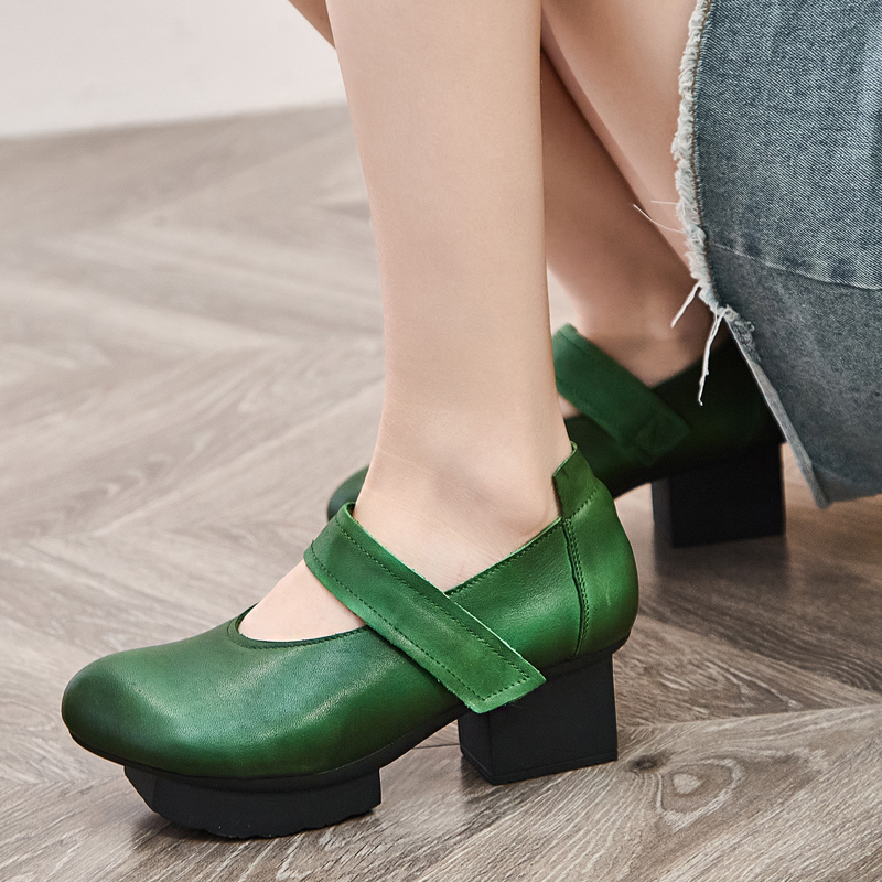 春秋媽媽鞋 子 2025新爆款 真皮小眾設(shè)計(jì)感復(fù)古粗跟淺口格格女士單鞋由
