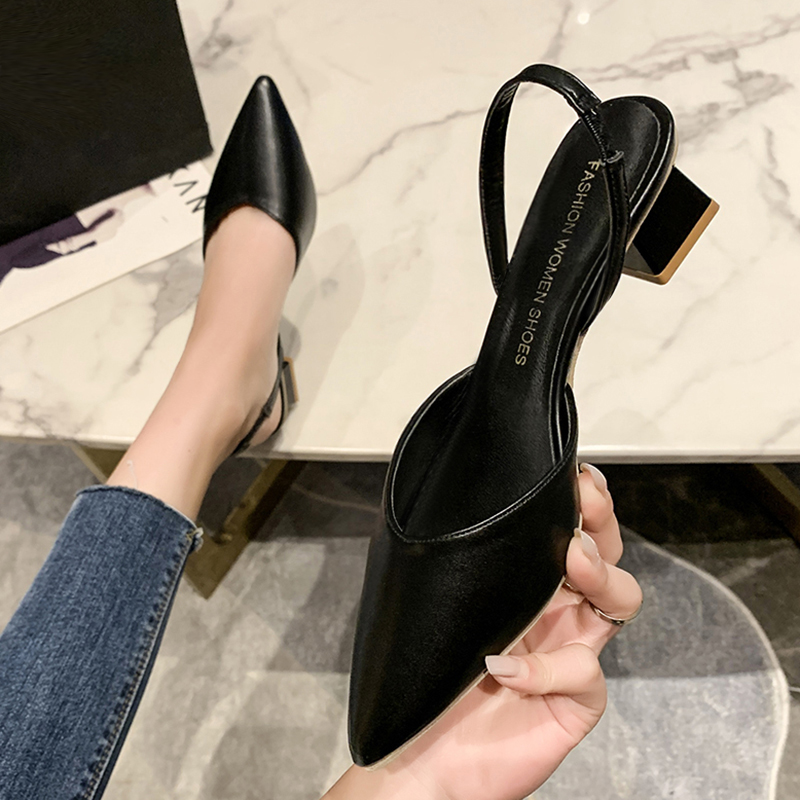 春季 法式 中跟包頭涼鞋 2025新款 仙女溫柔晚晚風(fēng)配裙子粗跟后空單鞋由