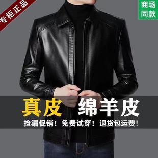 海寧真皮皮衣男士 加絨綿羊皮夾克中年爸爸裝 男款 休閑皮外套 秋冬季