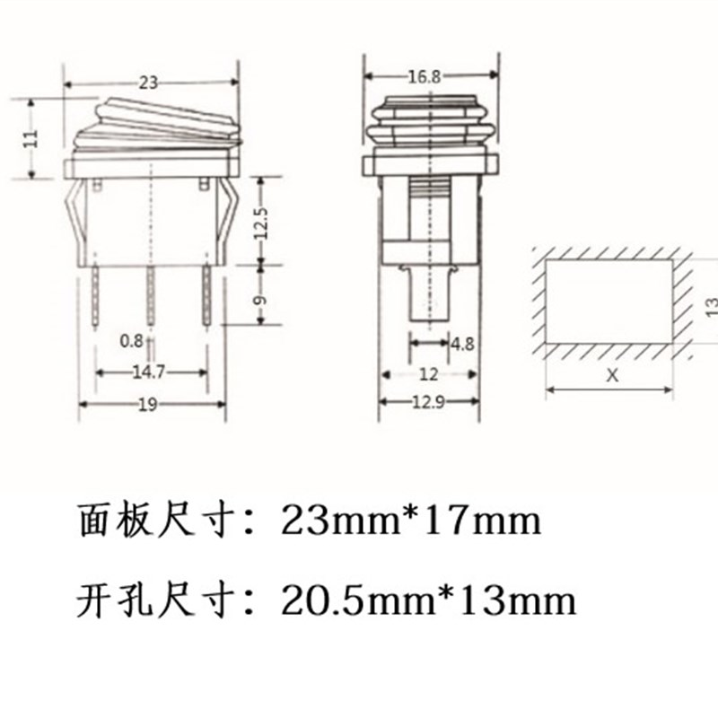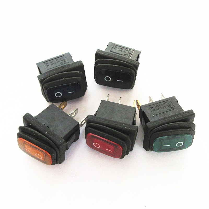KCD1防油防塵防水船型開關3腳2檔紅色帶燈小方形按鈕翹板電源開關由