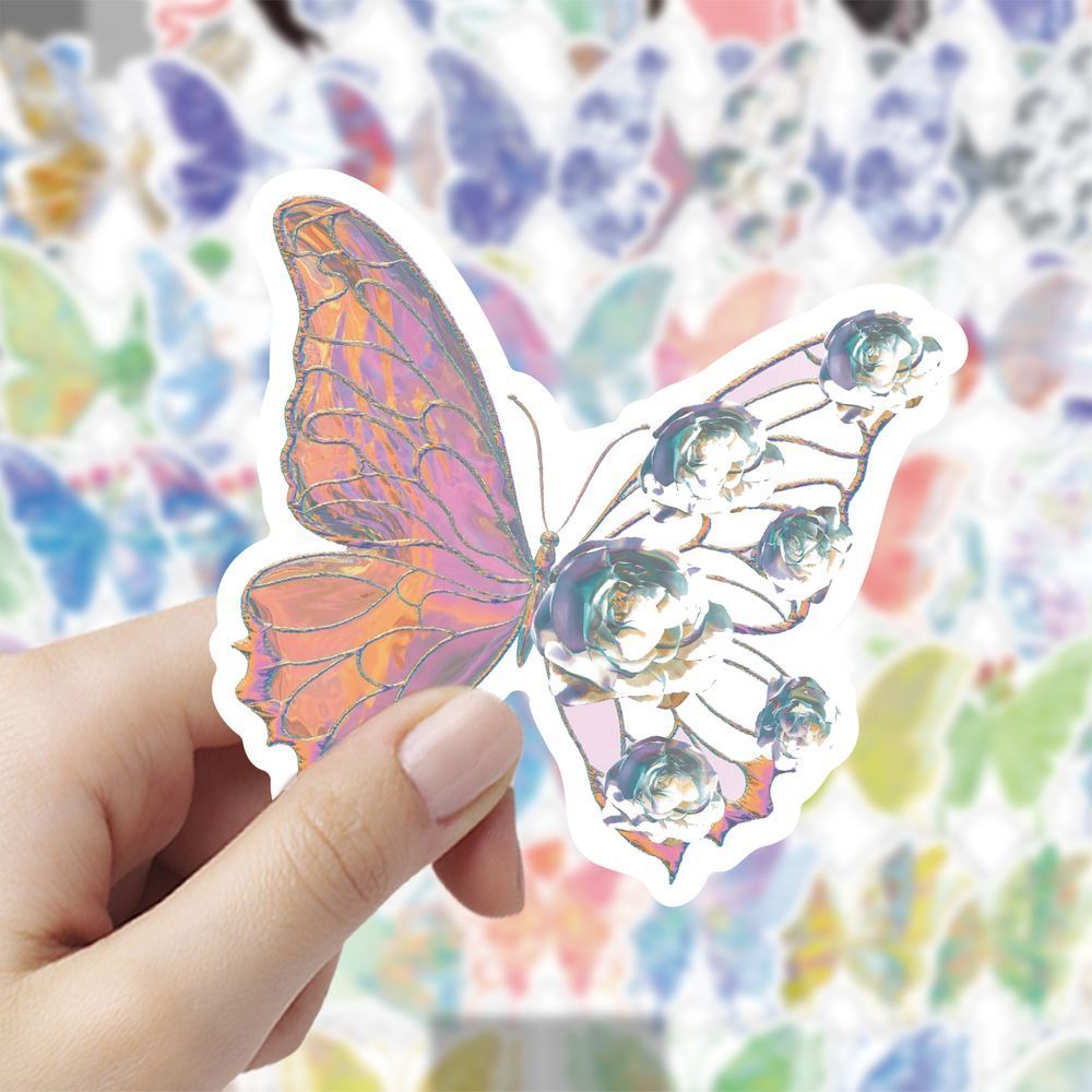 120張爆款 夢幻蝴蝶花貼紙ins風(fēng)創(chuàng)意小眾貼畫裝 飾手機水杯行李箱diy自粘行李箱玩具貼畫紙 大圖釋官方授權(quán)由