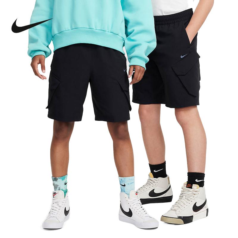 彈力梭織戶外黑色五分褲 耐克男女童大童工裝 短褲 秋新款 010 FZ4903由