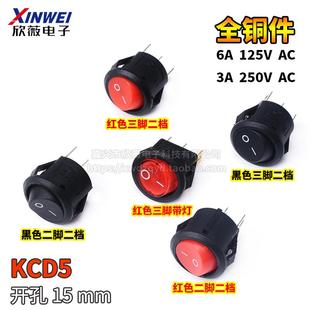 黑 紅色帶燈 船形孔15mm翹板電源2腳二檔三腳 KCD5小圓形船型開關由