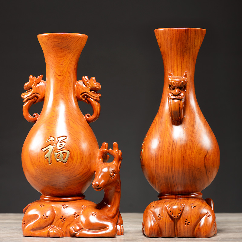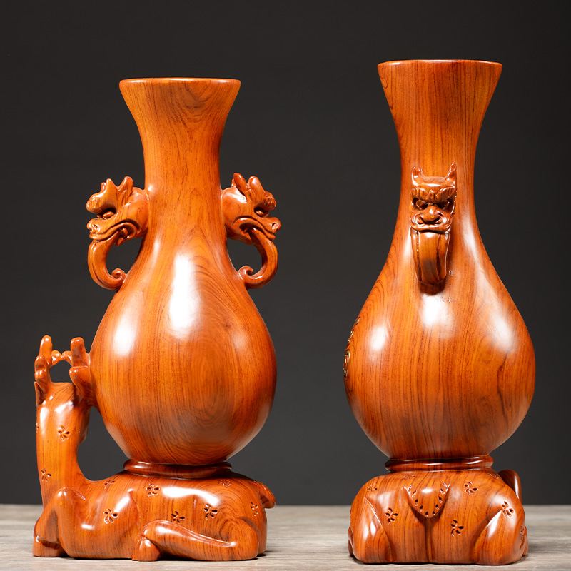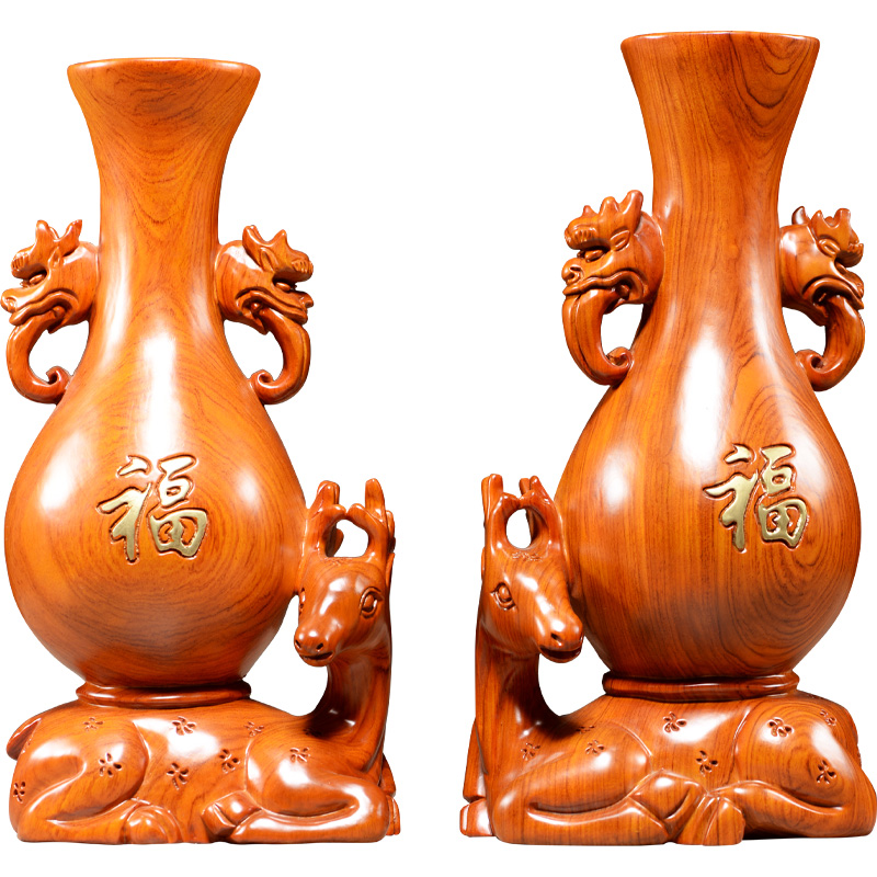 飾辦公擺設(shè)工藝禮品 花梨木雕花瓶擺件實(shí)木質(zhì)雕刻一路發(fā)家居客廳裝由