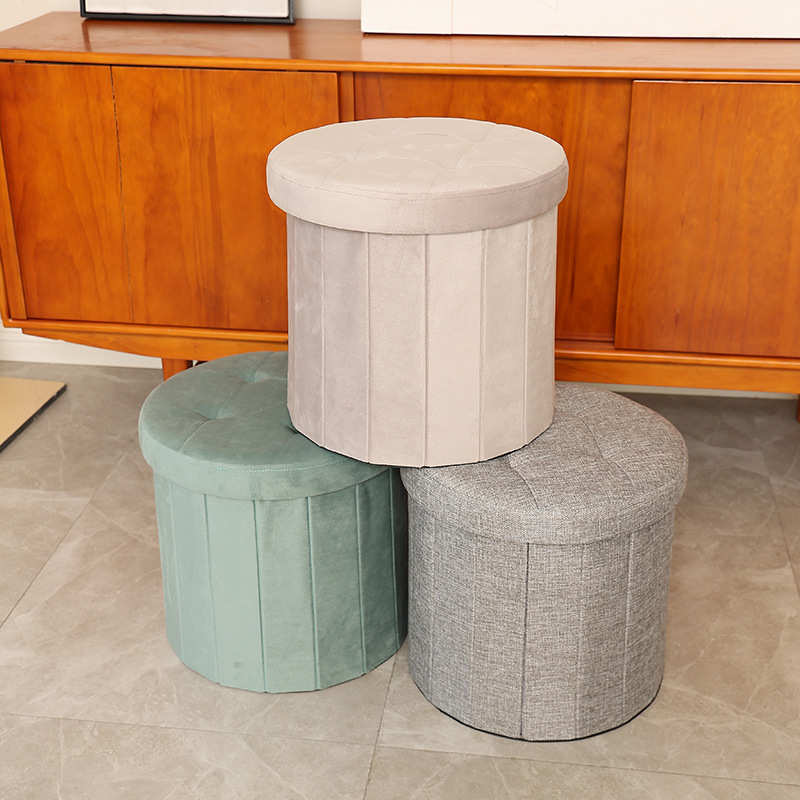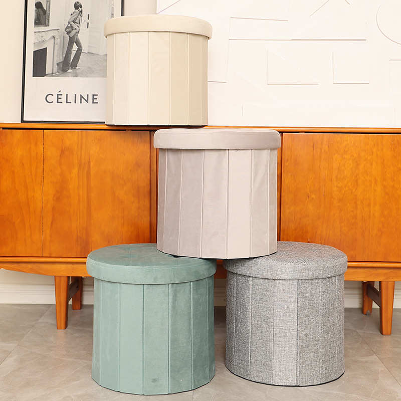 凳收納凳子 創意家用圓形麻布折疊收納凳雜物儲物凳客廳沙發凳換鞋由