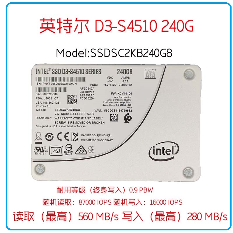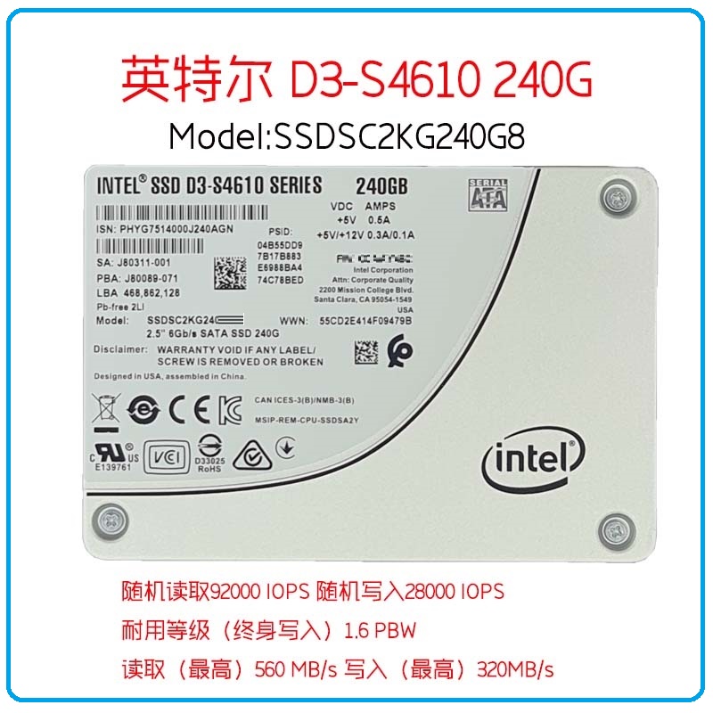 英特爾 S4520 480G 960G S4610 240G S4510 S4600 S4500 S4620由