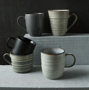 舍里日式 創(chuàng)意粗陶拉花杯子家用高檔精致馬克杯 復(fù)古咖啡杯碟套裝