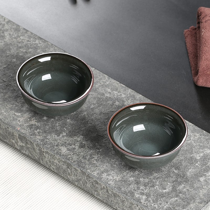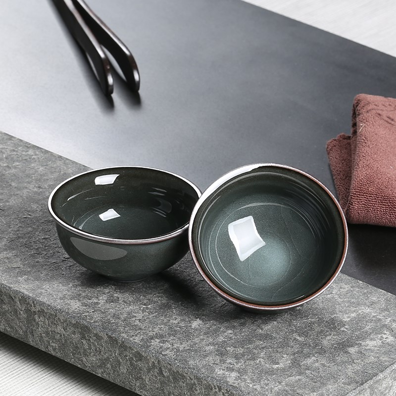 青瓷功夫茶具茶杯陶瓷哥窯冰裂紋主人杯單杯品名小茶碗斗笠盞由