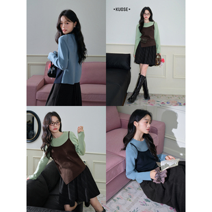闊色深棕色吊帶拼接長袖 女2025早秋季 新款 不規則設計感毛衣 針織衫由