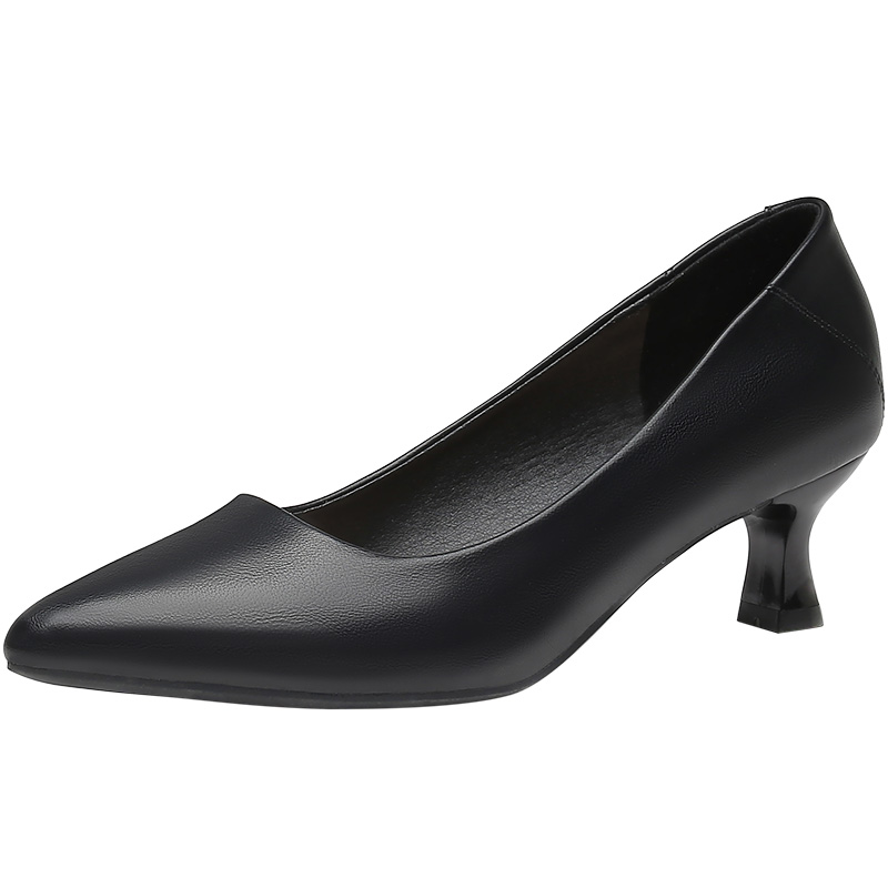 羊皮淺口法式 靜音系列 千百度粗高跟鞋 異形跟職業通勤大碼 單鞋