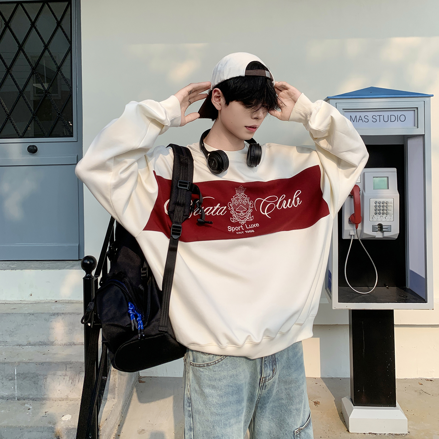 男士 百搭上衣 打底衫 清倉撿漏外貿撤回春秋衛衣男寬松圓領套頭長袖