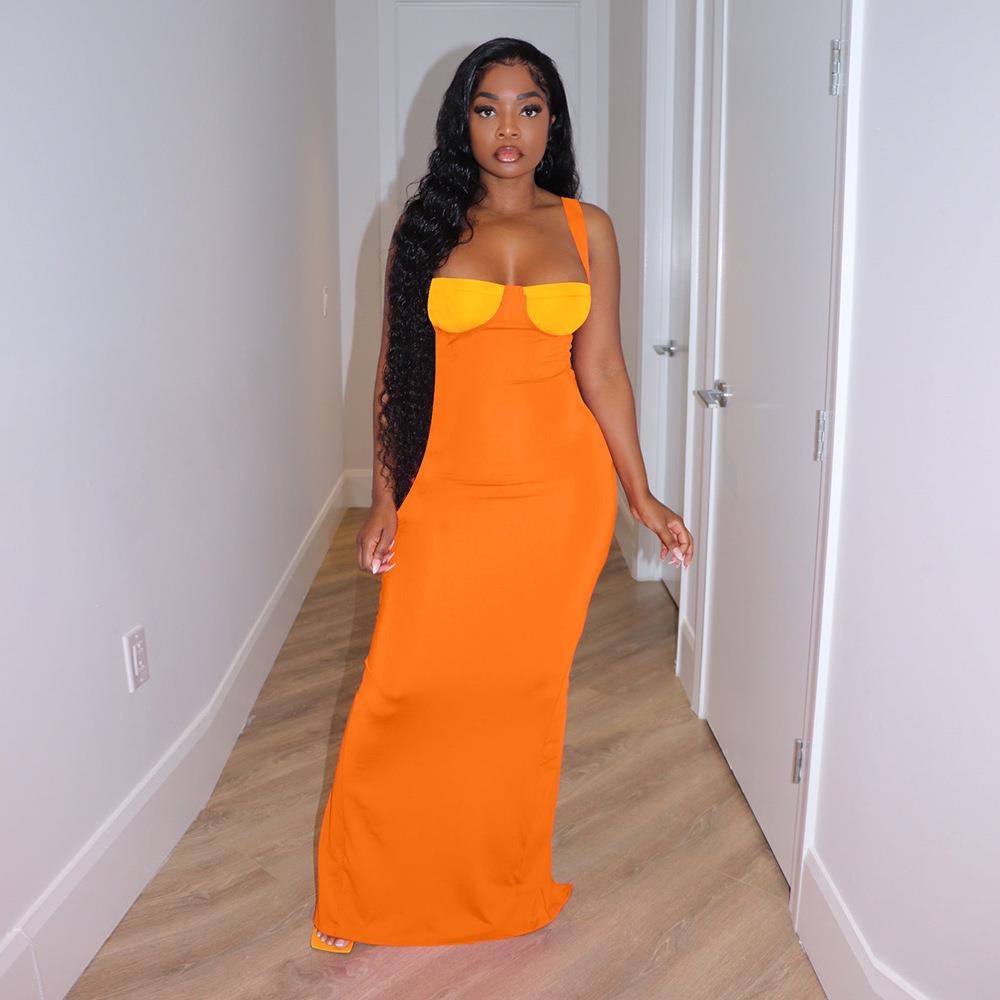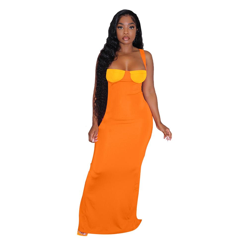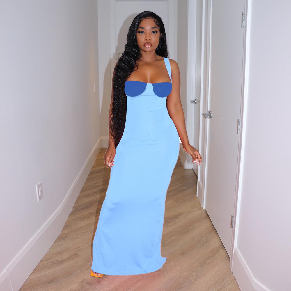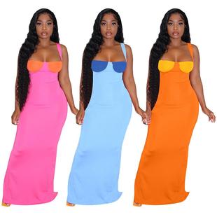 Women sexy color dress skirt contrast long knitted slit由