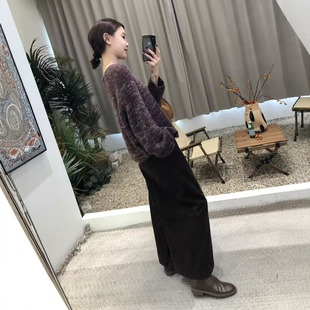 胖mm秋冬松弛顯瘦半身裙木子理想大碼 水洗做舊松緊腰抽繩裙子 女裝