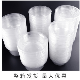 一次性圓碗商用冰粉專用帶蓋食品級(jí)塑料家飯碗湯碗飯盒打包300套