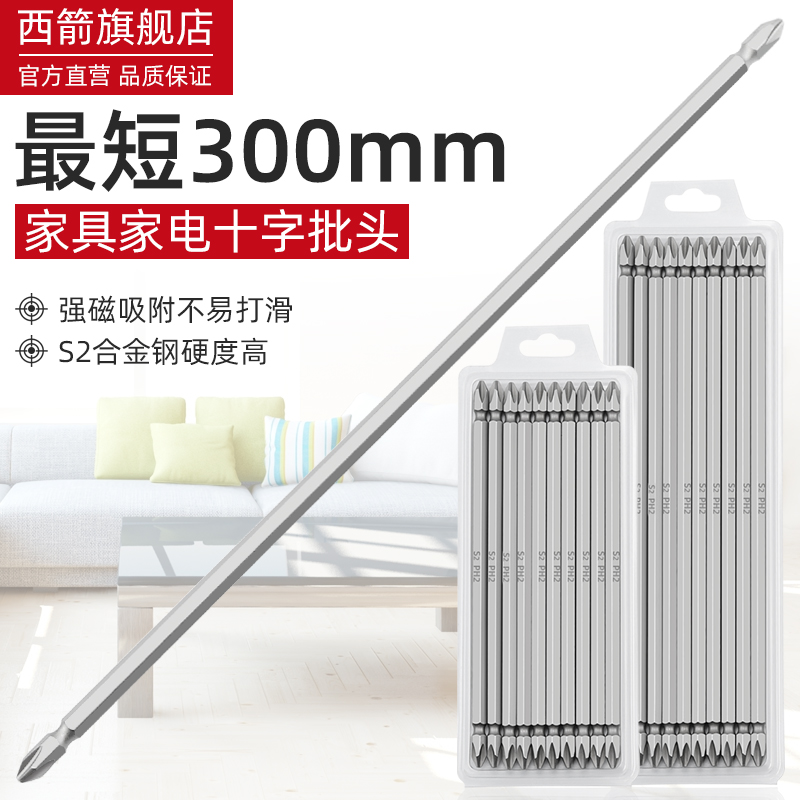 十字批頭電動螺絲刀手電鉆細頭S2加長電批披風高硬度六角強磁套裝