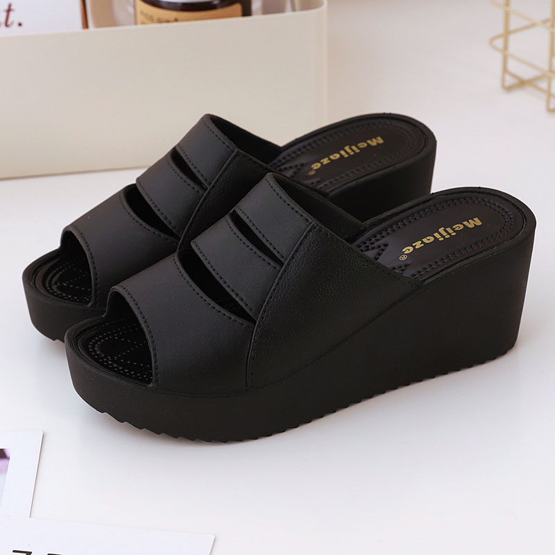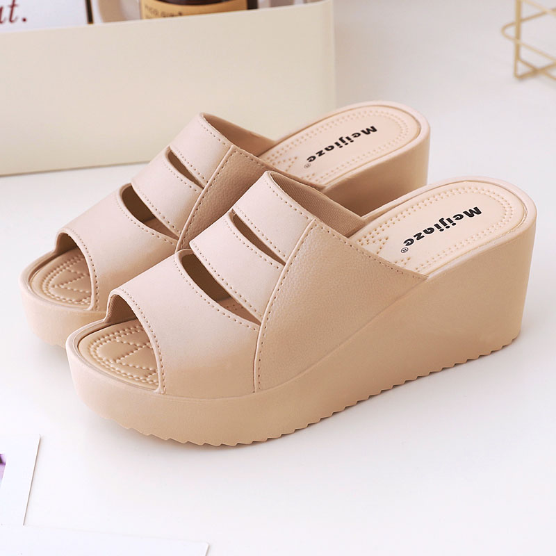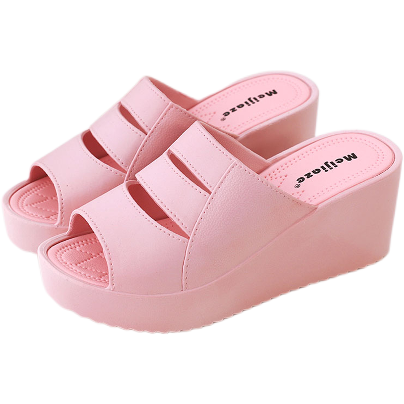 高跟防滑拖鞋 2025夏季 新款 厚底松糕底坡跟女士休閑涼拖鞋 外穿 時(shí)尚由