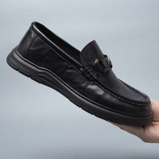 休閑皮鞋 七匹狼真皮豆豆鞋 男一腳蹬懶人樂福鞋 黑色男士 2025年秋季