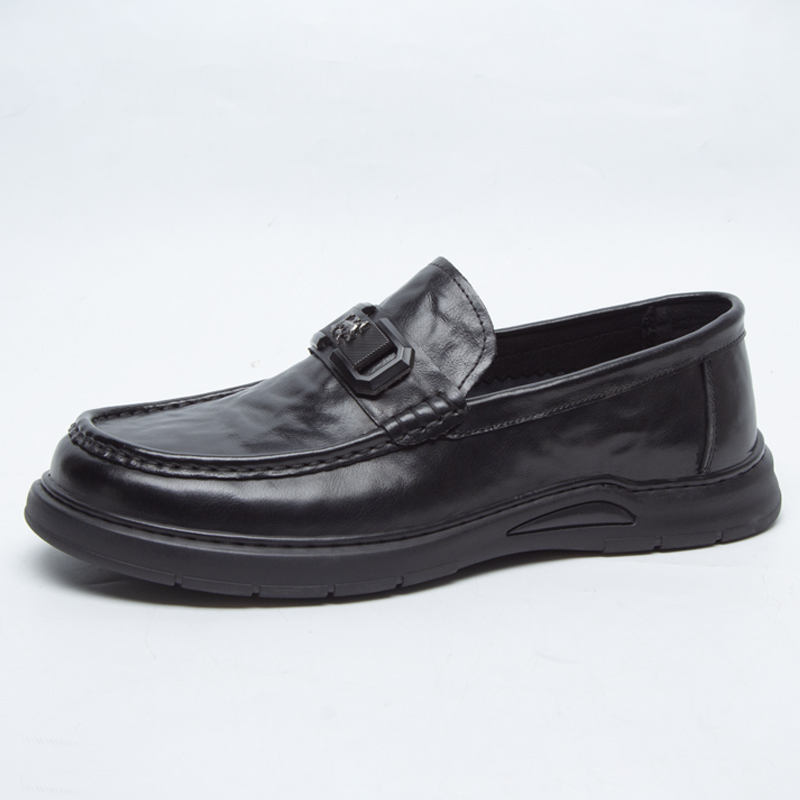 真皮腳寬大頭一腳蹬厚底豆豆鞋 男鞋 春秋新款 商務休閑皮鞋 男 樂福鞋由